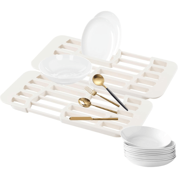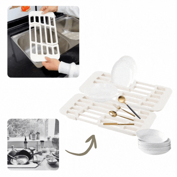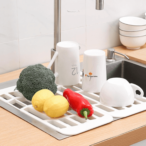 U paketu dobivate dva podesiva ocjeđivača, koja se lako postavljaju iznad sudopera. Idealni su za sušenje posuđa, voća ili pribora bez kapanja po pultu.